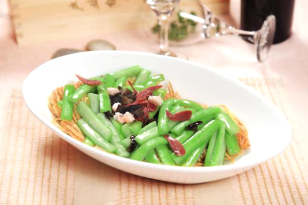 淮安茶馓創(chuàng)于清朝后期,距今有一百多年的歷史,1997年被認定為首屆中華名小吃。茶馓色澤嫩黃、造型秀麗、松酥香脆、獨具風(fēng)味,搭配清香的絲瓜,十分可口。