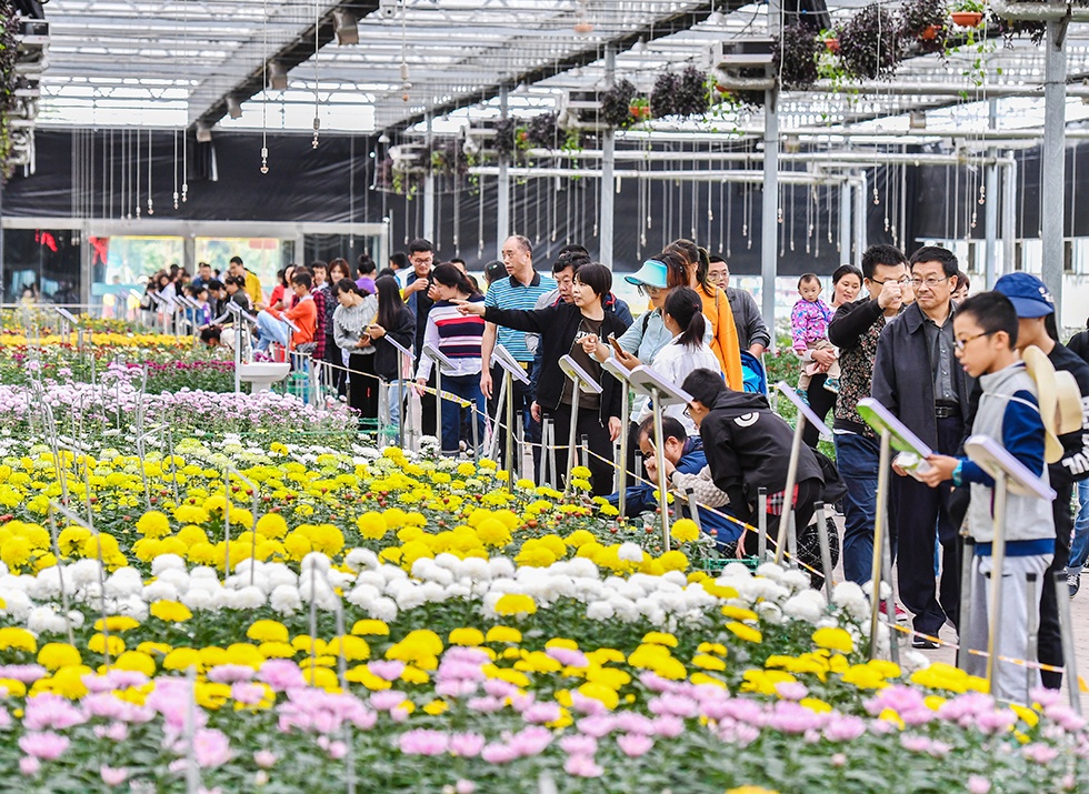 坐擁國家生態(tài)名湖之畔,吸納大湖風光,百畝菊海,香形具美。從高空俯瞰,萬千彩菊繪成各種紅色主題元素圖案,描繪出中華民族偉大復興的壯麗畫卷。
